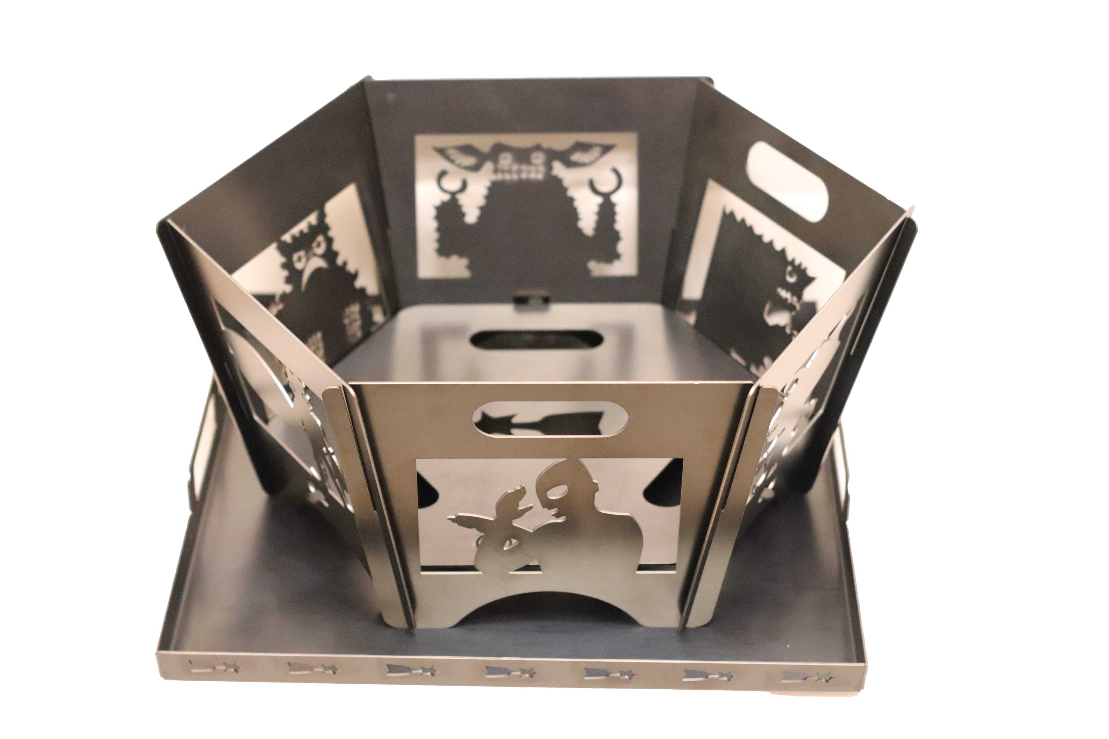 『ウルトラマン』の魅力のみならず、影絵の間が空気穴の役割を果たすことで、炎が鮮やかに燃え上がる「ウルトラファイヤー設計」により焚火台としても高い実用性を誇りつつ、本商品は組み立て式で、収納する際はコンパクトに6枚の板にバラせます。